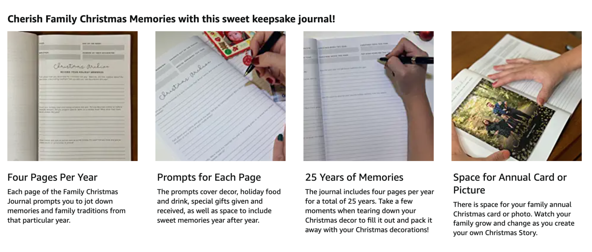 Keeping family memories has been a big part of my writing journey over my life - I had a family blog for years that I still cherish looking back at and reading. During the pandemic, when the traditions of the holidays were changed so much that first year, I decided to create a journal specifically for capturing year of memories - the years that family traditions remained as well at the years new plans and traditions were made.